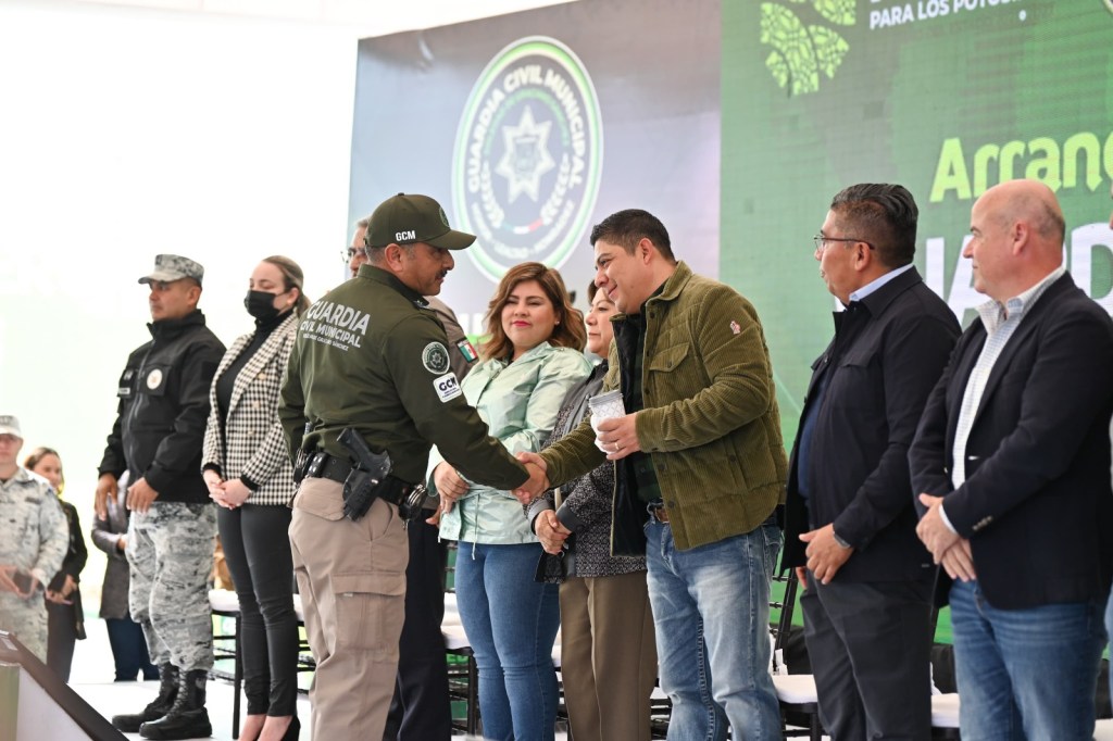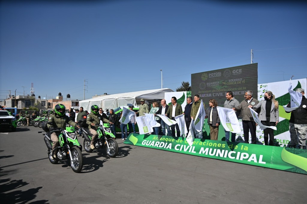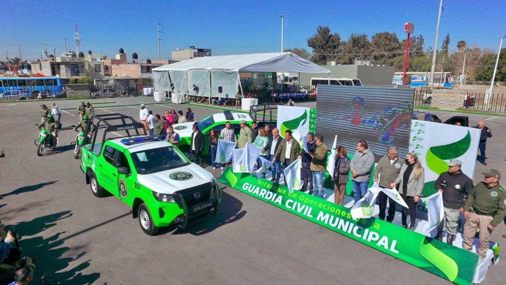 Para brindar más apoyo a las familias con seguridad, paz social y protección del patrimonio e integridad ciudadana, además de armonizar la estrategia de seguridad para hacer más efectivo el combate a la delincuencia, el Gobernador de San Luis Potosí, Ricardo Gallardo Cardona, acompañado del presidente municipal, Juan Manuel Navarro Muñiz, encabezó el arranque de operaciones y entregó equipamiento a la Guardia Civil Municipal de Soledad de Graciano Sánchez, con una inversión de 26.4 millones de pesos.