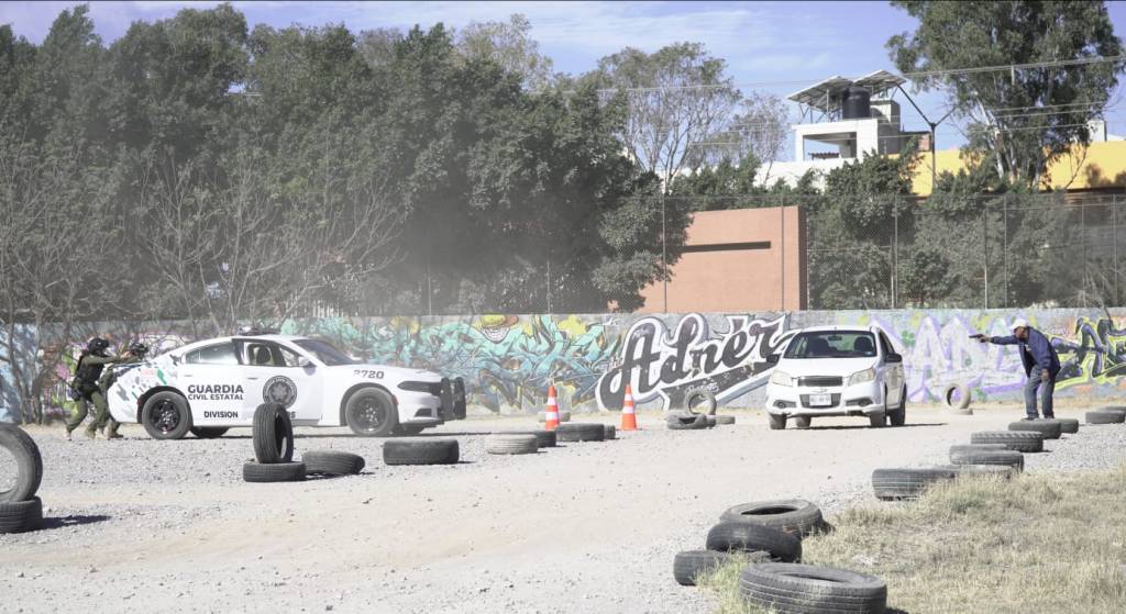Uno de los momentos más impactantes fue un simulacro de persecución vehicular, donde dos agentes femeninas de la GCE demostraron su destreza en la contención de un presunto delincuente. También, los binomios caninos Draco y Keysi realizaron una demostración de detección de sustancias, subrayando la importancia del trabajo especializado en la seguridad pública.