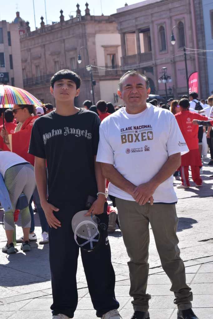 En el marco de la clase masiva «Boxeando por la Paz», realizada este lunes en la Plaza de Fundadores de la capital potosina, se contó con la presencia del regidor Temo Martínez, del municipio de Santa María del Río, quien compartió su punto de vista sobre la importancia de estas iniciativas en beneficio de la juventud y la salud mental.