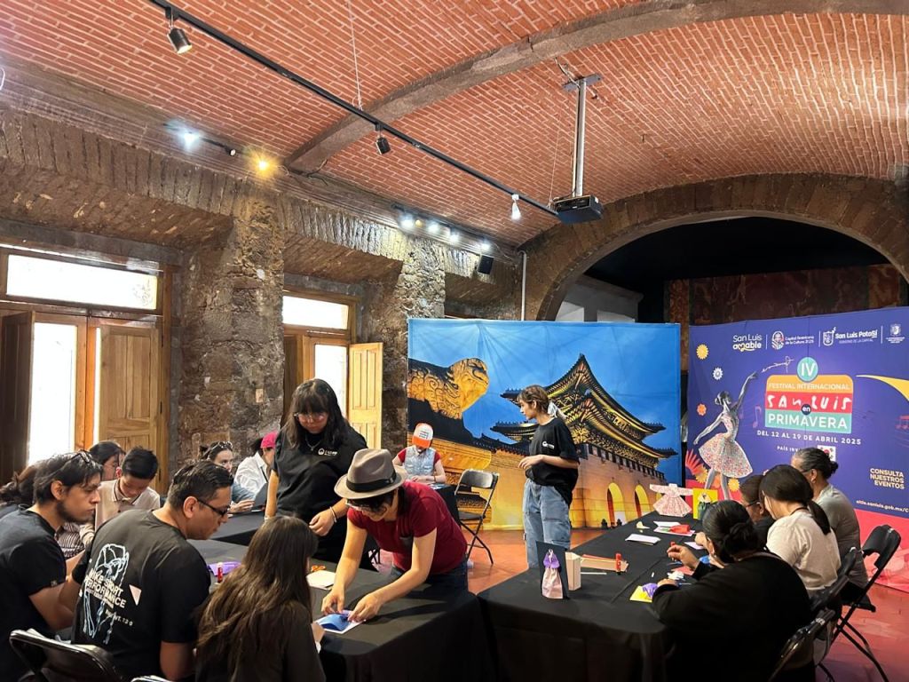 Decenas de chicos acudieron el primer día de actividades de los talleres a cargo del Centro Cultural Coreano en México en la sala de Los Cronistas de Palacio Municipal, mismo que se da en el marco del IV Festival Internacional San Luis en Primavera.