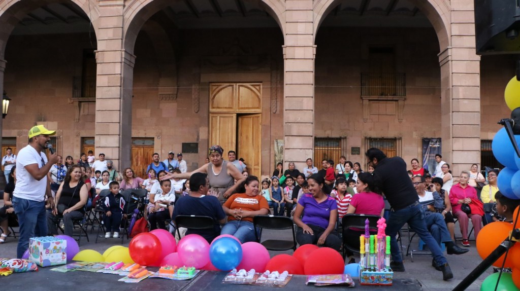 El evento se realizó frente a Palacio Municipal, en el que el presentador realizó una entretenida intervención de carácter infantil, no solo dirigida a los niños y niñas, sino en el que los padres pudieron disfrutar de un evento lleno de risas, música, alegría y juegos lúdicos para toda la familia.