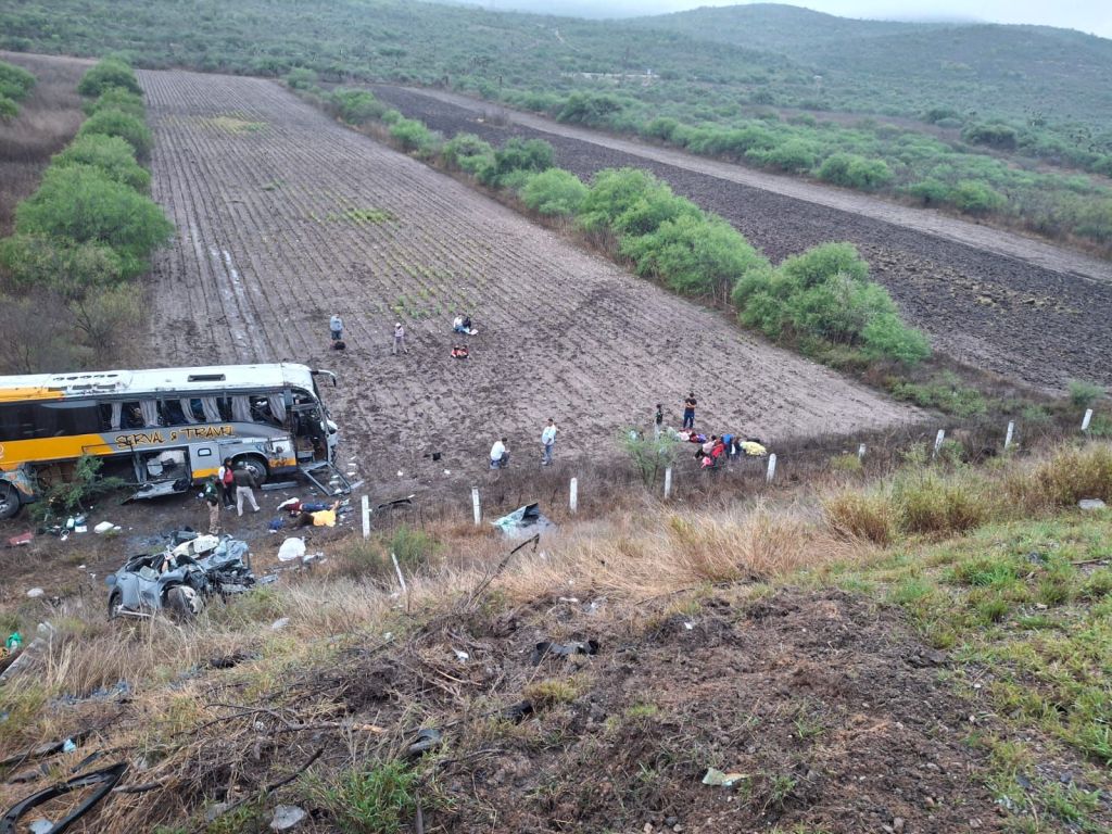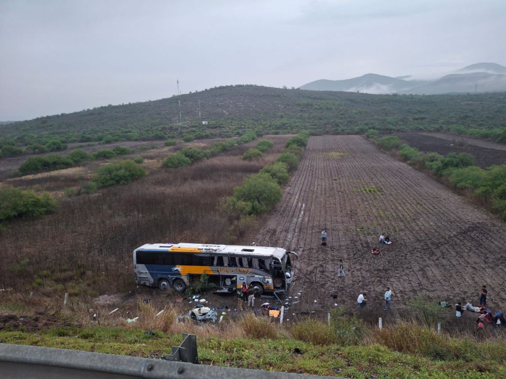 El incidente involucró a un autobús de turismo con destino a la región Huasteca el cual colisionó con un vehículo particular, lo que ocasionó que el conductor del autobús perdiera el control de la unidad y volcara.
