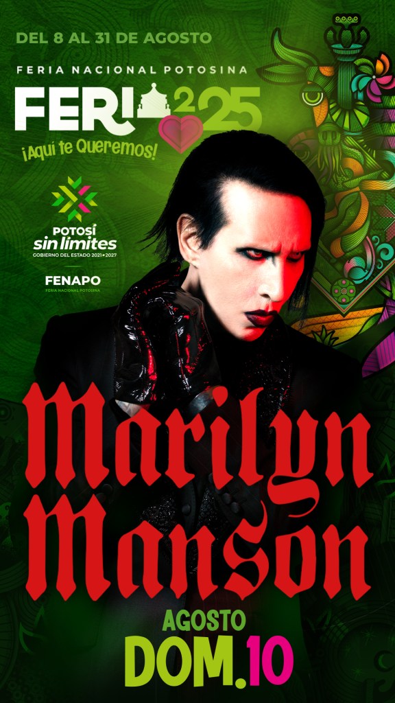 La Feria Nacional Potosina (Fenapo) 2025 vuelve a romper todos los esquemas al anunciar la participación de Marilyn Manson, una de las figuras más impactantes del rock mundial. El cantante se presentará el 10 de agosto en el Teatro del Pueblo, en lo que promete ser una noche inolvidable repleta de intensidad, rebeldía y potencia sonora.