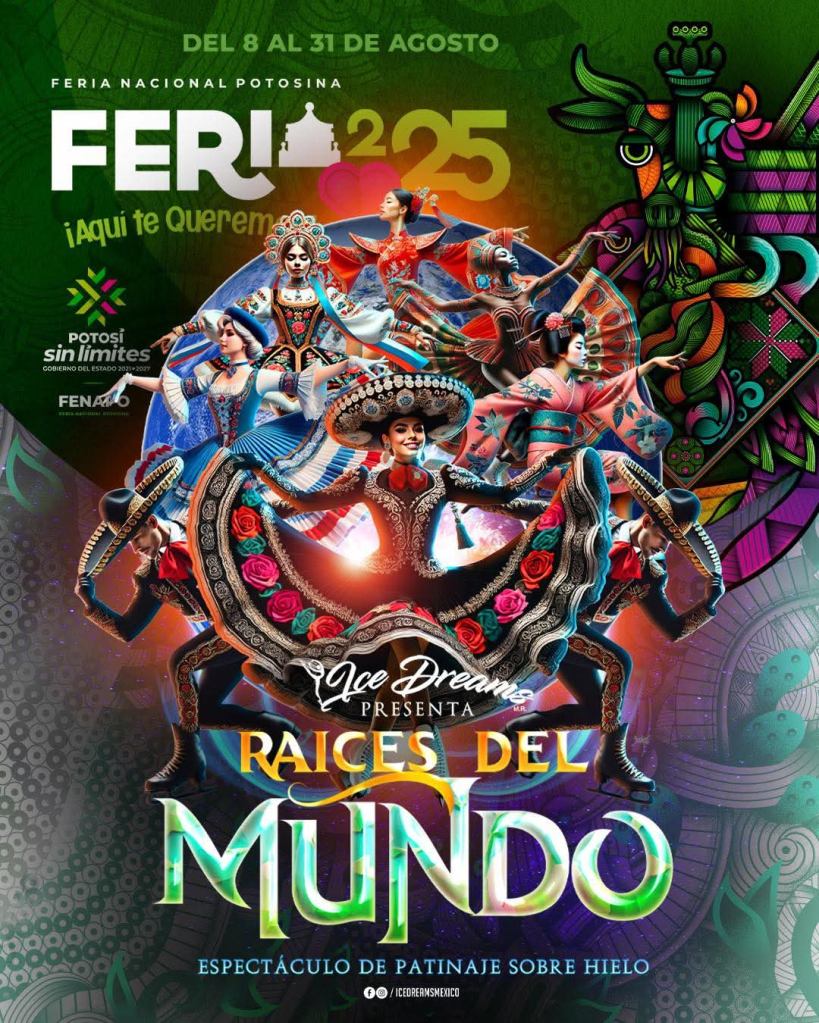 Prepárate para vivir una experiencia Sin Límites con #RaícesDelMundo ⛸️✨, el nuevo espectáculo de Ice dreams mexico que te llevará por un viaje cultural lleno de color, emoción y arte en la Feria Nacional Potosina 2025. 🎡🩷