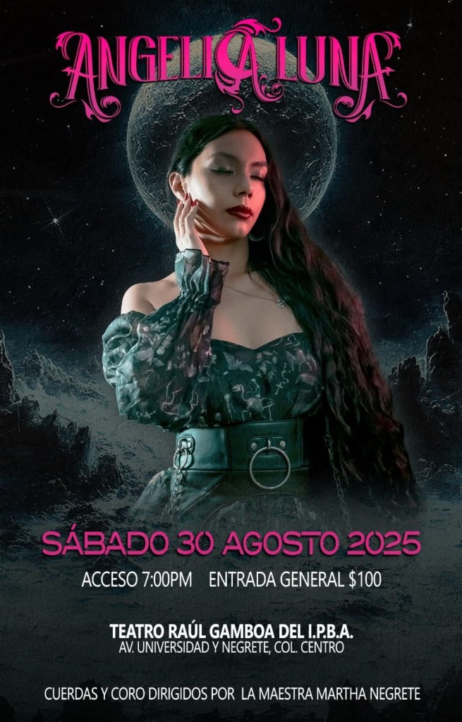 🙋Este 30 de agosto del 2025 desde las 7:00 pm asiste al concierto de Angelica Luna 🖤❤️💜 en el Centro Cultural Raul Gamboa ‼️