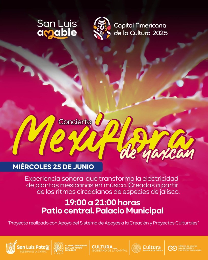 La Dirección de Cultura Municipal presenta la actividad Mexiflora: el sonido de la naturaleza, en el patio central del Centro Cultural Palacio Municipal, mismo que se desarrolla este miércoles 25 de junio a partir de las 7 de la tarde.
