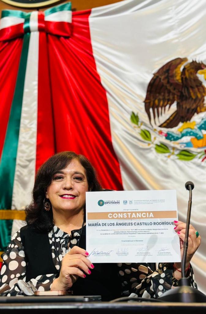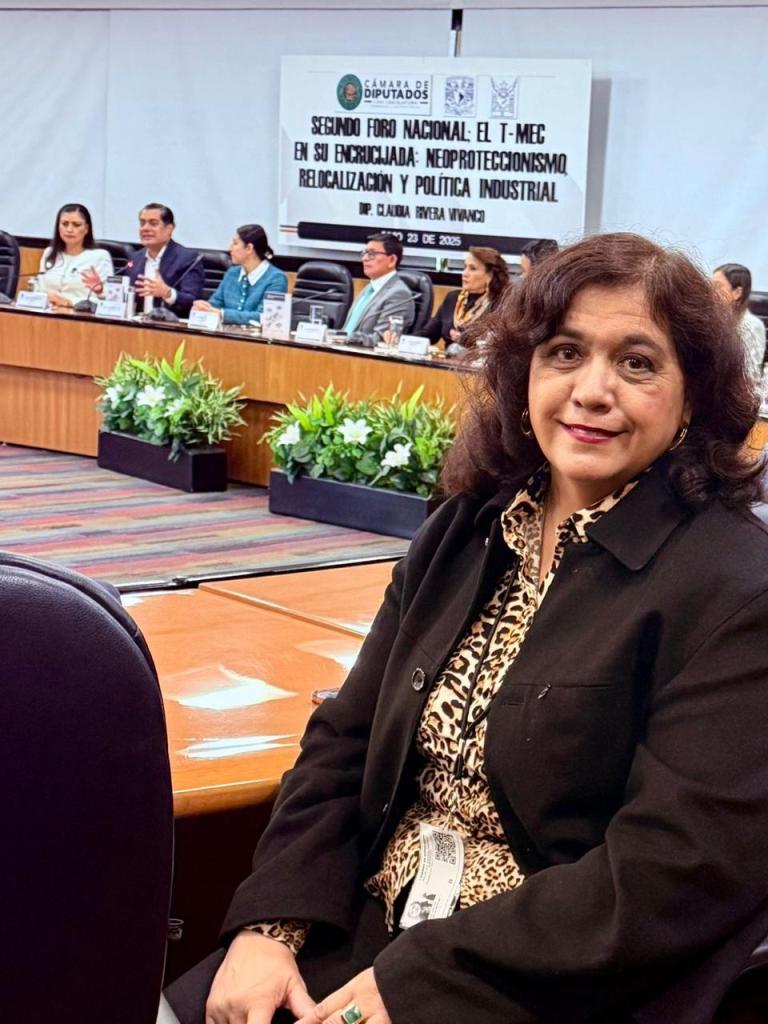 María de los Ángeles Castillo Rodríguez (Mico Castillo), actual Secretaria de Mujeres del Comité Ejecutivo Estatal de Morena de San Luis Potosí tuvo una destacada participación en el Segundo Foro Nacional “El T-MEC en la encrucijada: neoproteccionismo estadounidense, nearshoring y el Plan México”, el pasado 23 y 24 de junio en la Cámara de Diputados, en la Ciudad de México.