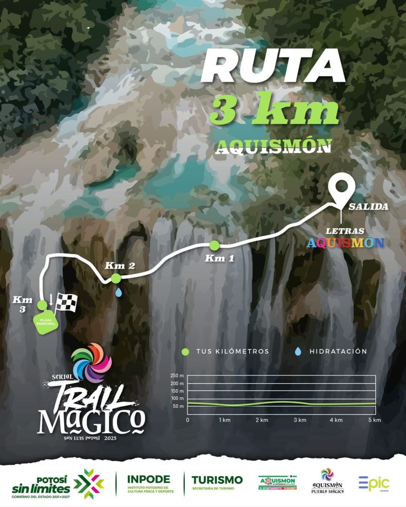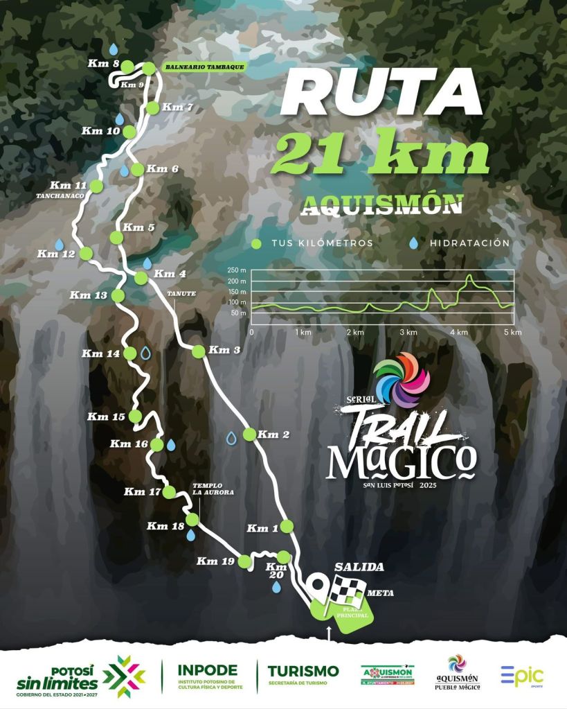 El director del Instituto Potosino de Cultura Física y Deporte (Inpode), Francisco Serrano, explicó que la actividad comienza este sábado 19 de julio a partir de la 19:00 horas con las distancias de tres y cinco kilómetros donde las y los atletas partirán de las emblemáticas letras de Aquismón para finalizar en la plaza principal recorriendo sitios representativos y llenos de historia.