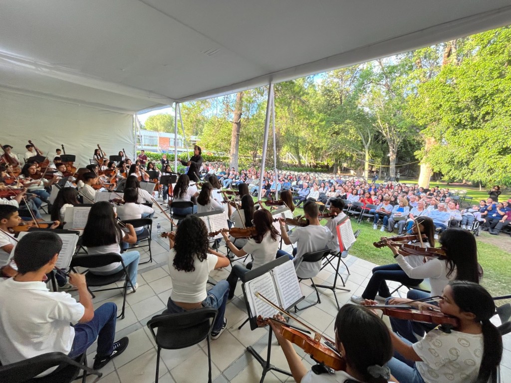 El repertorio transportó a la audiencia en un viaje musical que incluyó obras emblemáticas como Júpiter de Los Planetas de Holst, Marcha Eslava, Sheherezada, En la Gruta del Rey de la Montaña de Grieg, selecciones de Harry Potter, Norma la de Guadalajara de Pérez Prado, entre otras. El concierto también contó con la participación especial del exalumno Oswaldo Banda Martínez, quien interpretó con maestría El Cisne de Saint-Saëns y un danzón de Arturo Márquez en el violonchelo, emocionando profundamente al público.