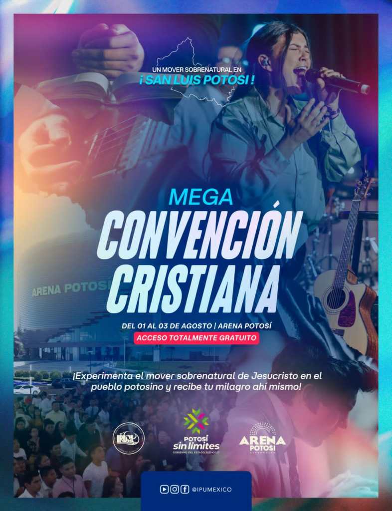 San Luis Potosí será sede de la Convención Nacional 2025 de la Iglesia Pentecostal Unida de México en la majestuosa Arena Potosí que albergará a más de 16 mil visitantes internacionales de norte, centro y Sudamérica, así como de Europa, con una derrama económica estimada de más de 30 millones de pesos para el sector turístico, hotelero, restaurantero y de servicios.