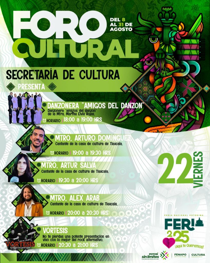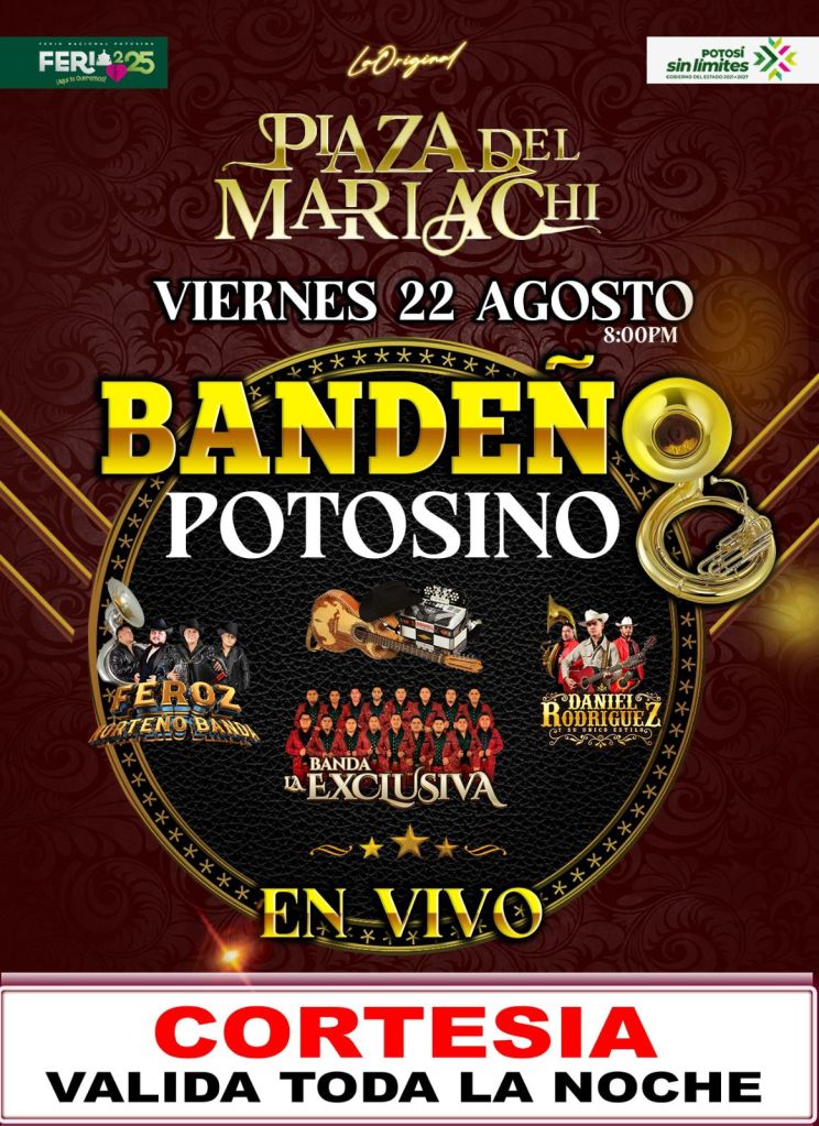 La música será parte esencial de la jornada, con presentaciones en la Plaza del Mariachi a cargo de Bandeño Potosino, Norteño Banda Feroz, Banda La Exclusiva y Daniel Rodríguez, además de los conciertos programados en la Muestra Gastronómica, el Foro Cultural, el Teatro del Pueblo y el Palenque, donde brillarán artistas como La Arrolladora Banda Limón y María José.