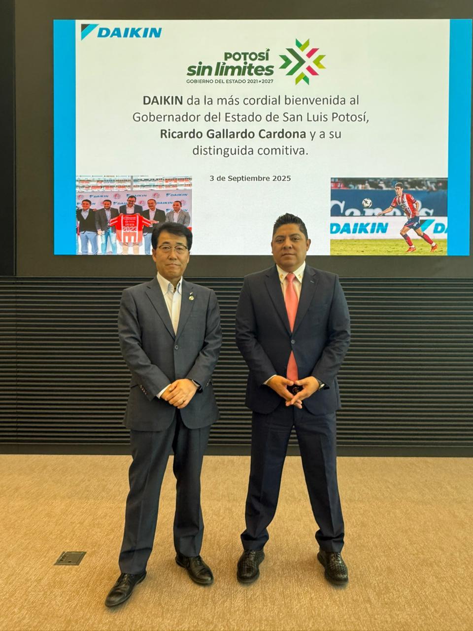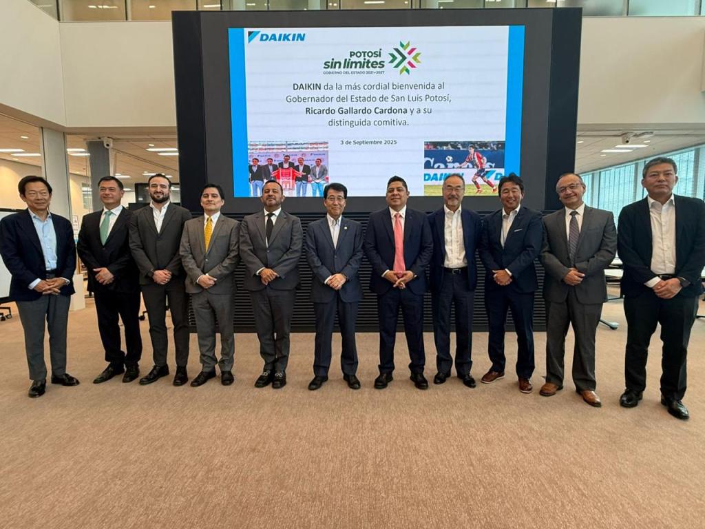 • Durante la inauguración de la oficina de San Luis Potosí en Japón, el Gobernador anunció que Daikin invertirá en octubre 7 mil millones de pesos en su nueva planta que instalará en la Entidad.
