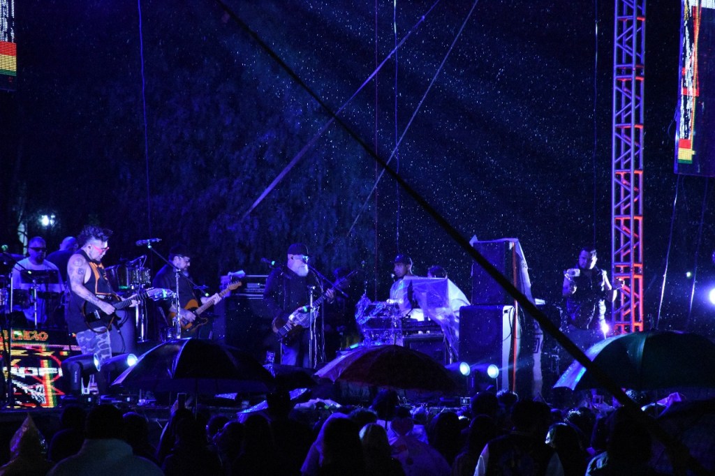 La agrupación regiomontana encendió el escenario con su característico estilo que mezcla rock, cumbia y ritmos urbanos, provocando que el público permaneciera animado de principio a fin, sin que las condiciones climáticas fueran un impedimento.