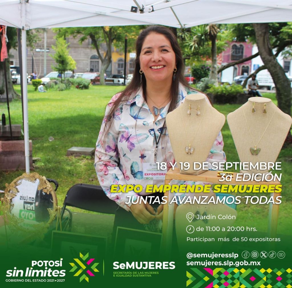 La Secretaría de las Mujeres e Igualdad Sustantiva (Semujeres) realizará la tercera «Expo Emprende: Juntas avanzamos todas» el próximo jueves 18 y viernes 19 de septiembre de las 11:00 a las 20:00 horas en la explanada del Jardín Colón donde participaran más de 50 emprendedoras.