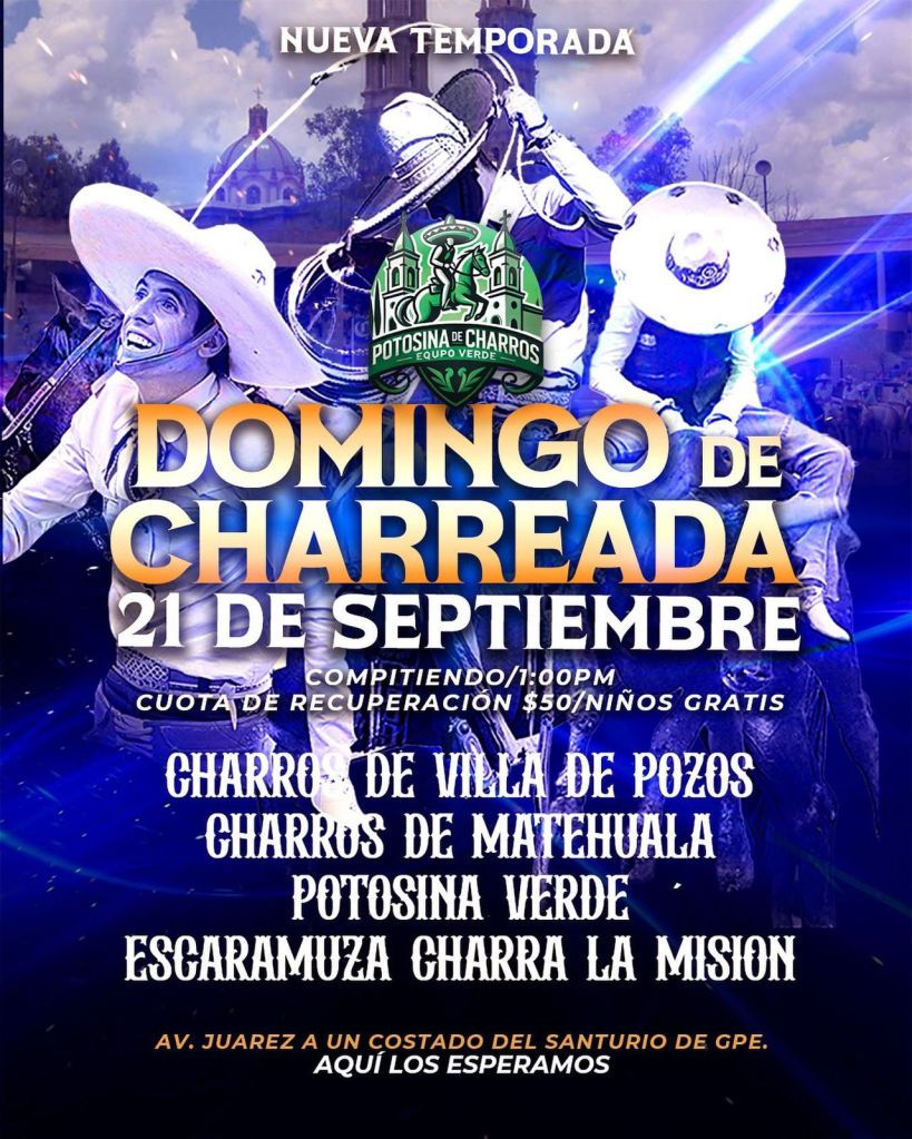 El domingo 21 se vivirán emociones deportivas con el circuito Coconal de ciclismo en Villa de Pozos desde las 7:00 horas, lucha libre en Soledad a las 17:00 horas y la tradicional charreada en el Rancho del Charro desde la 13:00 horas, además de un concierto en Real de Catorce Ecos de mi Tierra, en el Patio del Centro Cultural el viernes 19 a las 19:00 horas y Ciudad Valles Gala de Voces Potosinas, el sábado 20 en el teatro Fernando Domínguez a las 19:00 horas.