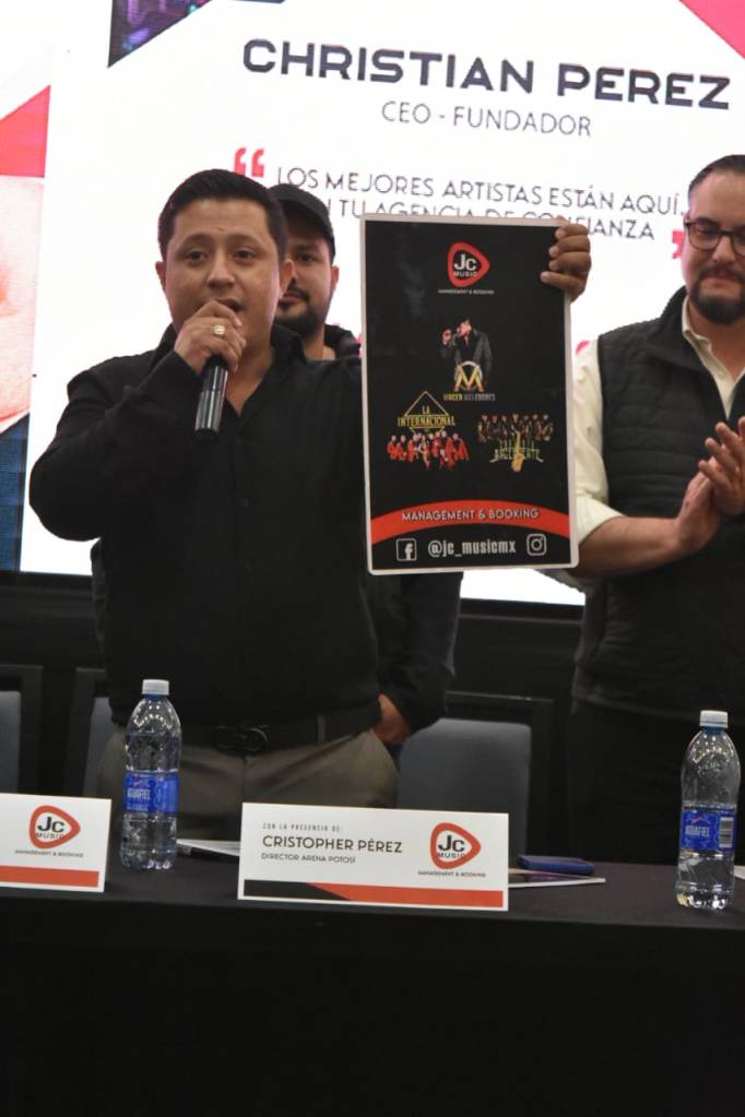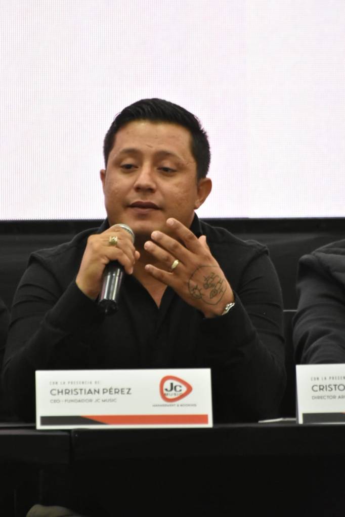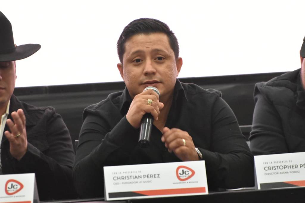 Durante la rueda de prensa, el fundador de JC Music, Christian Pérez, agradeció a los medios de comunicación y a los invitados por el apoyo brindado a la empresa, recordando que su trayectoria como empresario inició en 2012 a sus 21 años y en marzo de 2014 en la edición de la FERETAM (Feria Regional de Tamasopo) y que su primer experiencia como productor de artistas fue Juan Salazar quien también estuvo presente en la ceremonia.
