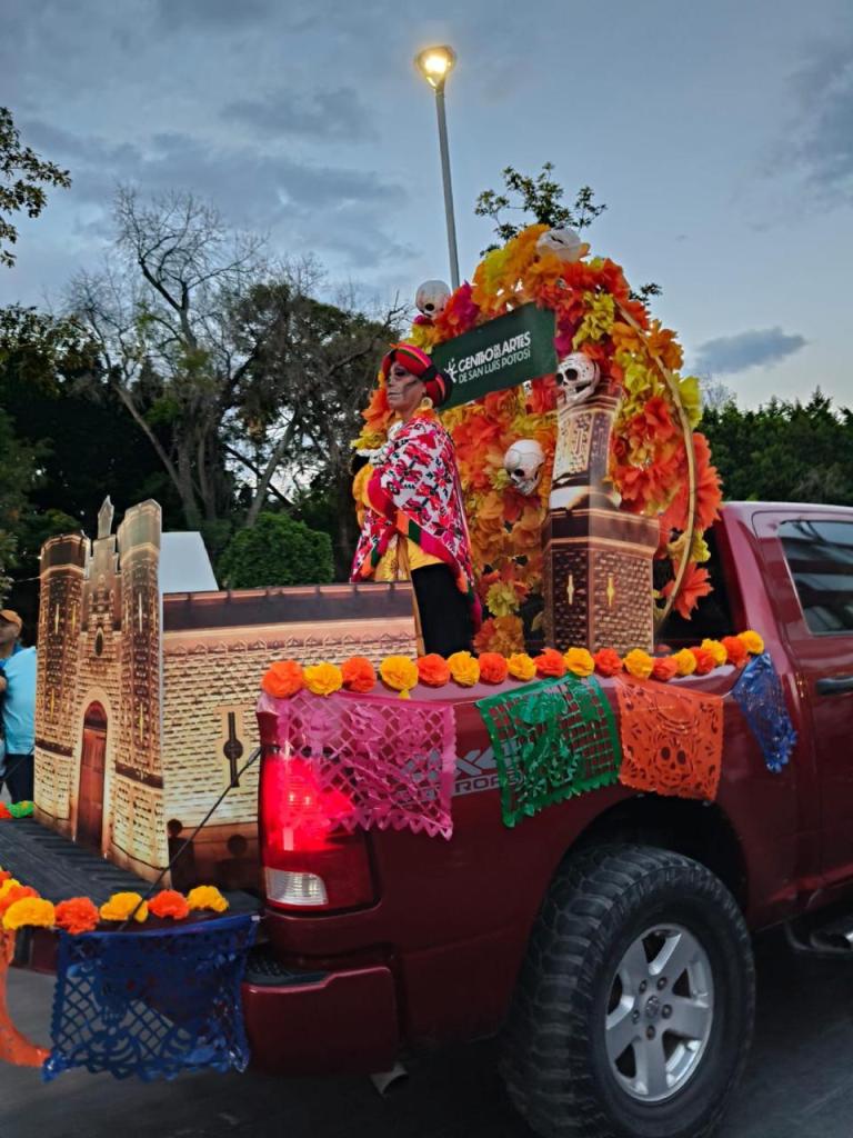 El ambiente de fiesta y orgullo potosino, así como los acordes de los sones huastecos acompañaron el paso de las catrinas, los carros alegóricos y las danzas típicas que evocaban la riqueza cultural del Día de Muertos. Niños, jóvenes y adultos participaron con entusiasmo, mostrando el amor por una tradición que, año con año, se renueva y se fortalece. Las familias aplaudieron cada comparsa, mientras los aromas del incienso y las flores de cempasúchil se mezclaron con la emoción de quienes presenciaron el desfile.