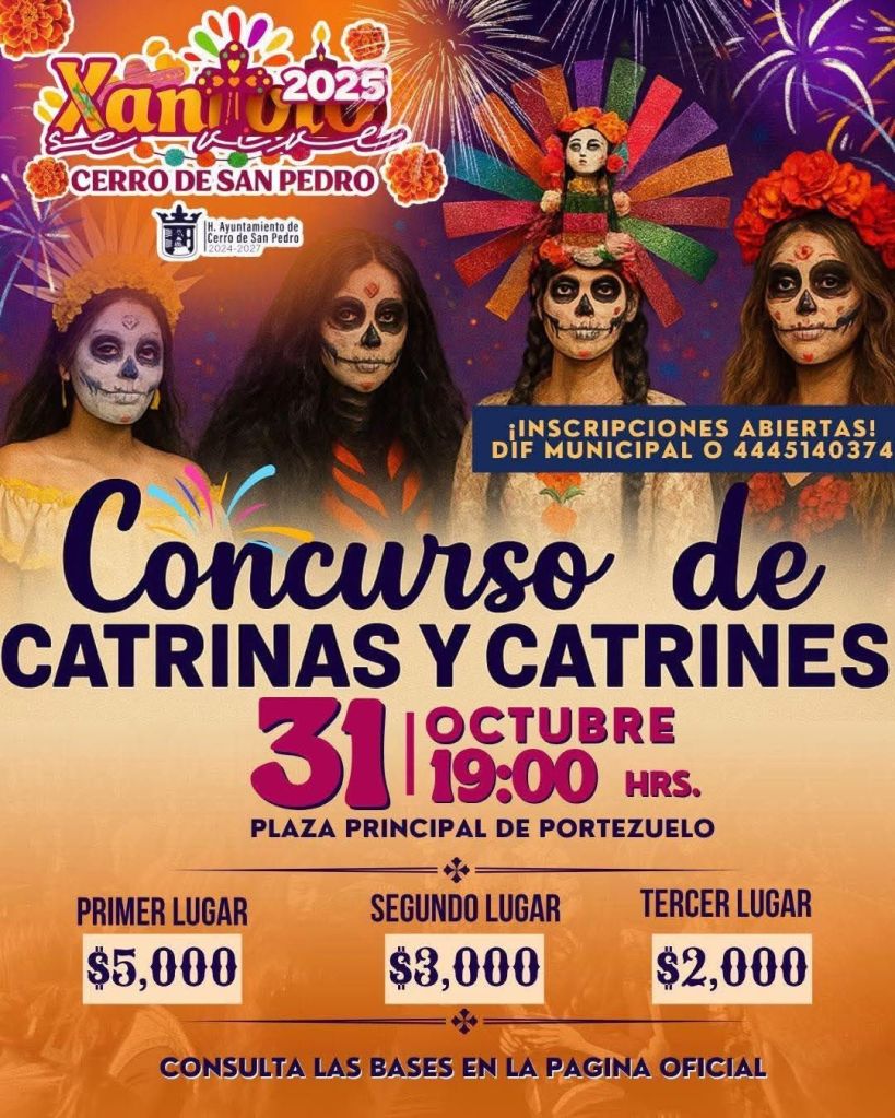 Cerro de San Pedro fortalece su vocación turística y cultural con la realización del segundo Festival del Día de Muertos, alusivo al Xantolo, que se llevará a cabo en distintas localidades del municipio con el objetivo de preservar las tradiciones y ofrecer espacios de convivencia para habitantes y visitantes.