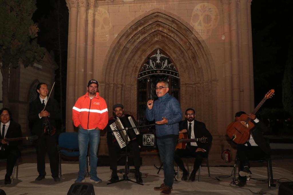 En el marco de la celebración del Día de Muertos y como parte del Festival Razones para Recordar, el Gobierno Municipal de San Luis Potosí, a través de la Dirección de Cultura Municipal y en coordinación con la Dirección de Servicios Municipales, llevó a cabo un magnífico concierto a cargo de la agrupación Sangre de Coyote, Gipsy Jazz & Música del Mundo, teniendo como escenario el histórico Panteón Municipal del Saucito.