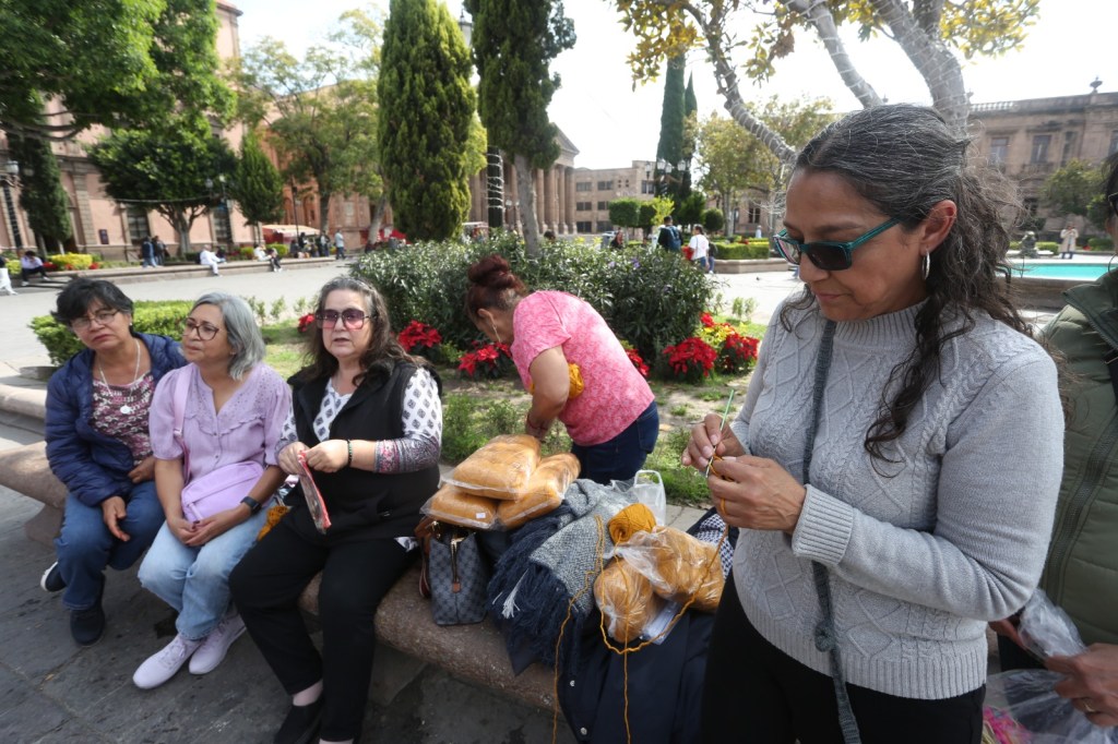 🧶💚 Para darle vida se elaboraron más de 3 mil grannys, esos cuadritos tejidos que, unidos, forman esta impresionante y colorida pieza que hoy adorna la Plaza del Carmen en San Luis Potosí.