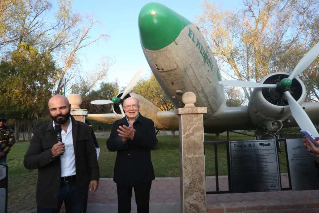 El titular de los Centros Estatales de Cultura y Recreación Tangamanga, Joaquín García Martínez, junto al Arq. Alejandro Castillo Orejel, inauguraron el museo del avión El Mezquite, el histórico Douglas DC-3, un ícono de la aviación mundial que ahora vuelve a cobrar vida en un recinto restaurado para devolverle su identidad auténtica y acercarlo lo más posible a su estado original.
