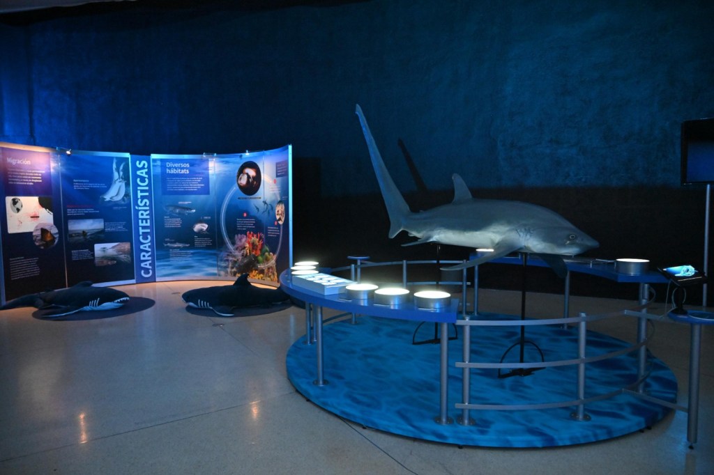 La muestra, video-fotográfica e interactiva, ofrece a la juventud, a la niñez y a las familias potosinas la oportunidad de acercarse a la ciencia y al fascinante mundo de los tiburones. La exposición ha sido presentada en importantes recintos culturales, como el Museo de Historia Natural de la Ciudad de México, y cuenta con el impulso del Museo Americano de Historia Natural de Nueva York.