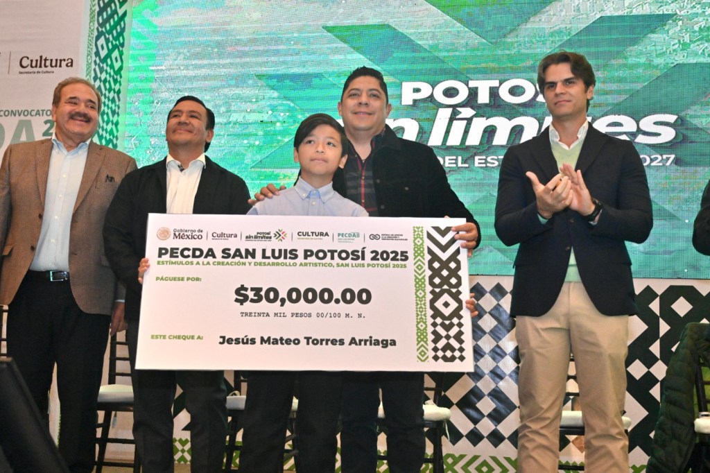 Al entregar los estímulos económicos y reconocimientos del Programa de Estímulos a la Creación y Desarrollo Artístico (PECDA) 2025, que este año aumentó el número de beneficiarios a 67 artistas con una inversión conjunta de 4 millones 150 mil pesos, el Gobernador de San Luis Potosí Ricardo Gallardo Cardona refrendó el compromiso de fortalecer el desarrollo artístico y cultural en el Estado.
