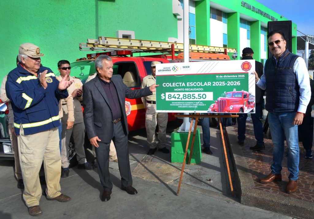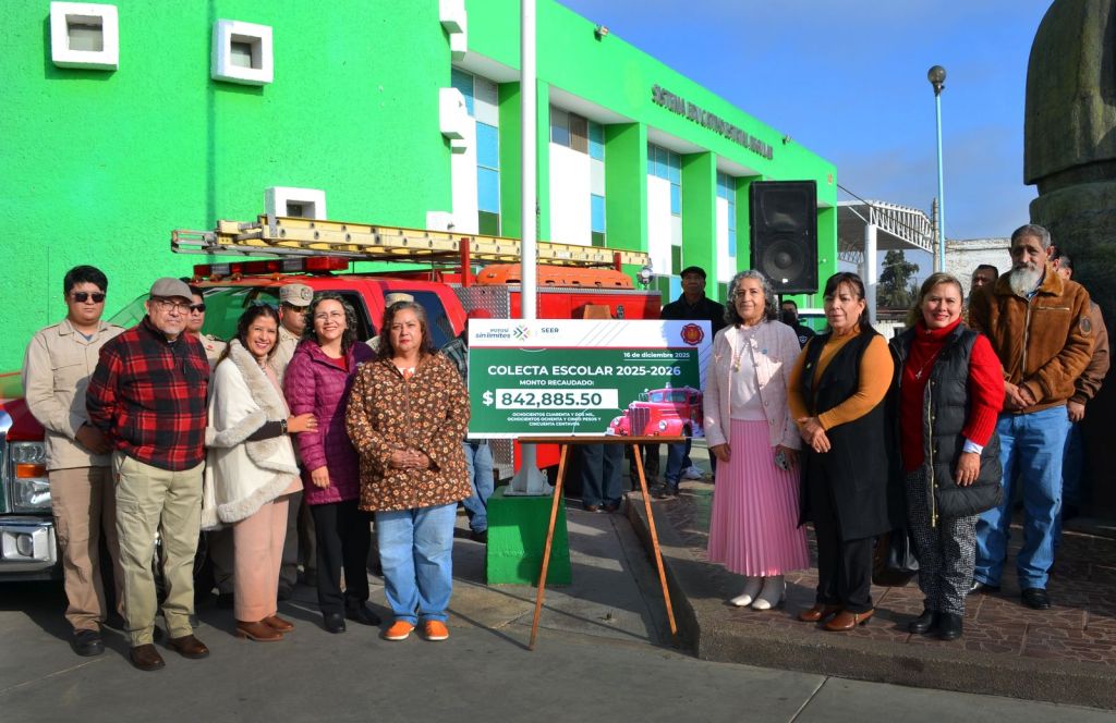 El Sistema Educativo Estatal Regular (SEER) refrendó su compromiso social con la entrega de más de 842 mil pesos en apoyo al Heroico Cuerpo de Bomberos como parte de la Colecta Escolar 2025–2026, resultado de la participación responsable de directivos, personal administrativo, docentes, alumnas y alumnos de diversas instituciones educativas.