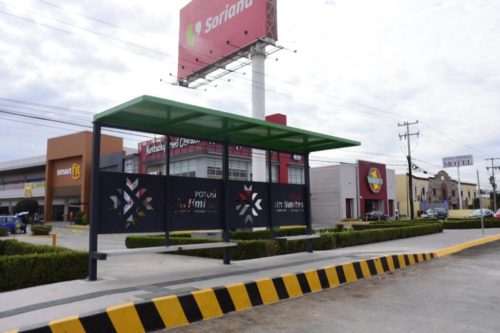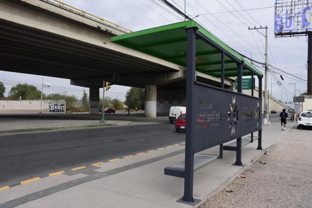 - La nueva ruta ya se encuentra definida y es posible ver la instalación de los primeros parabuses que se ubican en ejes estratégicos para conectar comunidades con el Aeropuerto y la Alameda «Juan Sarabia».