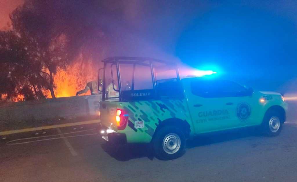 La noche de este viernes se registró un incendio🔥 en un lote baldío sobre avenida San Pedro, en las inmediaciones de avenida Negrete, a un costado de una tienda de autoservicio, lo que generó la movilización inmediata de cuerpos de emergencia⛑️🦺 de Soledad de Graciano Sánchez y de Cuerpo de Bomberos.