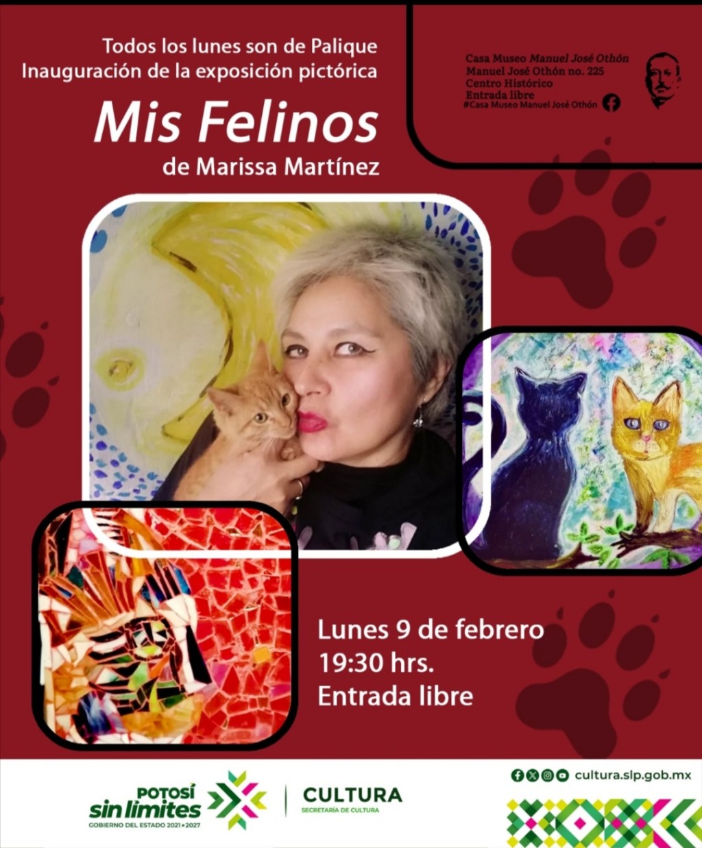 Este lunes 9 de febrero acompáñanos a la inauguración de la exposición pictórica “Mis Felinos” de la artista Marissa Martínez, dentro de Todos los lunes son de Palique.