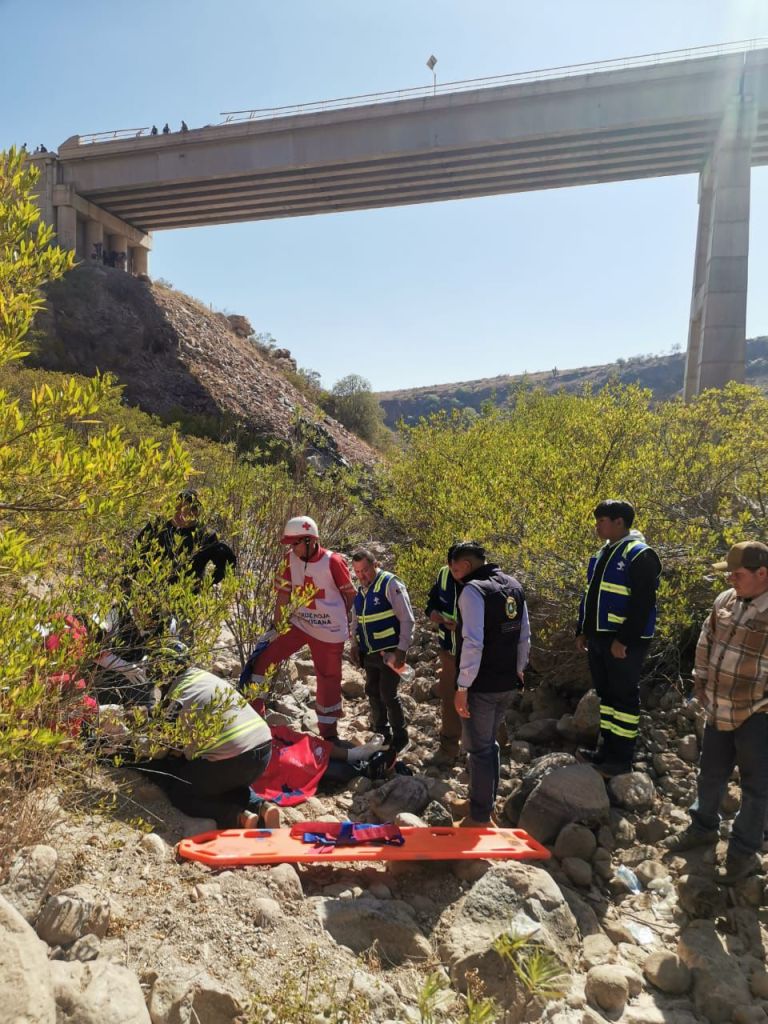 De acuerdo con la información recabada en el lugar, el conductor dormitó al volante, impactó la barrera de contención y fue proyectado hacia un voladero de aproximadamente 40 metros de profundidad.