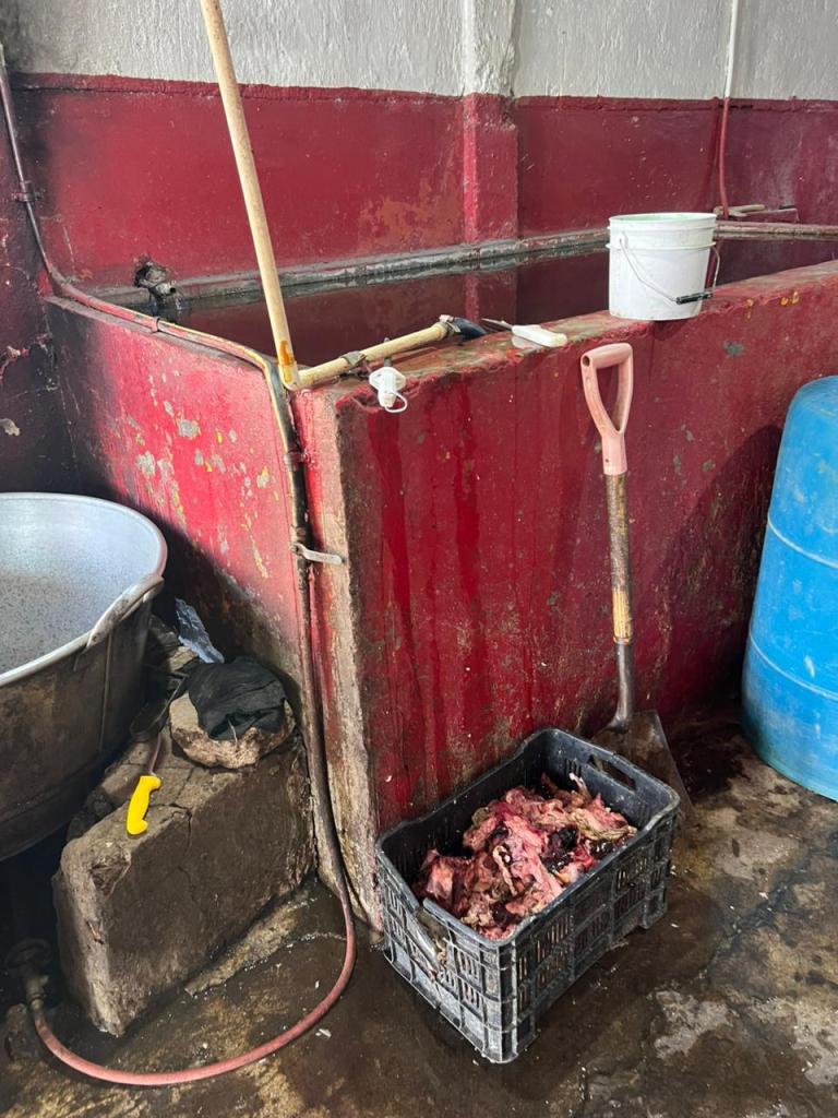 Durante la inspección encabezada por el titular de la dependencia, Mauricio Ordaz Flores, se constataron múltiples irregularidades, entre ellas deficientes condiciones higiénico-sanitarias, sacrificio de animales sin control adecuado, almacenamiento de restos en tinas y tambos, así como sistemas de refrigeración sin mantenimiento, lo que representaba un riesgo para la salud pública.