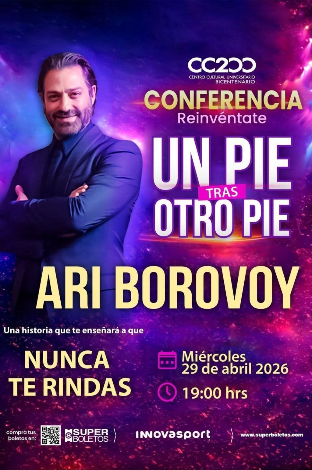 El próximo 𝟐𝟗 𝐝𝐞 𝐚𝐛𝐫𝐢𝐥, ARI BOROVOY llega a San Luis con la conferencia ❞𝐑𝐞𝐢𝐧𝐯𝐞́𝐧𝐭𝐚𝐭𝐞, 𝐔𝐧 𝐩𝐢𝐞 𝐭𝐫𝐚𝐬 𝐨𝐭𝐫𝐨 𝐩𝐢𝐞❞, una charla inspiradora donde compartirá su historia de vida, los retos que enfrentó y las decisiones que lo llevaron a reinventarse personal y profesionalmente.