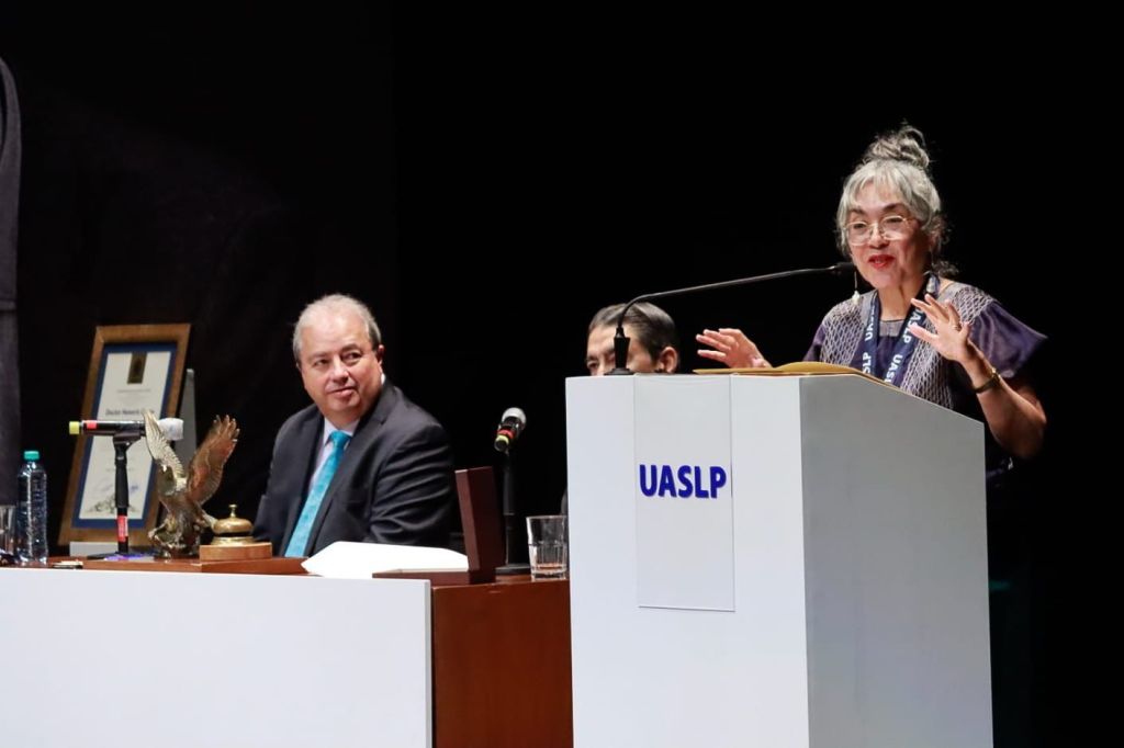 Conmovida por el reconocimiento, Cristina Rivera Garza señaló que el Doctorado Honoris Causa otorgado por la Universidad Autónoma de San Luis Potosí tiene un significado especial por sus raíces en San Luis Potosí. Recordó que sus abuelos paternos, originarios de Venado, emigraron hace más de un siglo hacia el norte del país en busca de mejores condiciones de vida. “Estar aquí, dos generaciones después, recibiendo este reconocimiento en el estado donde ellos nacieron, pueden imaginarse el peso emocional que eso tiene”, expresó.