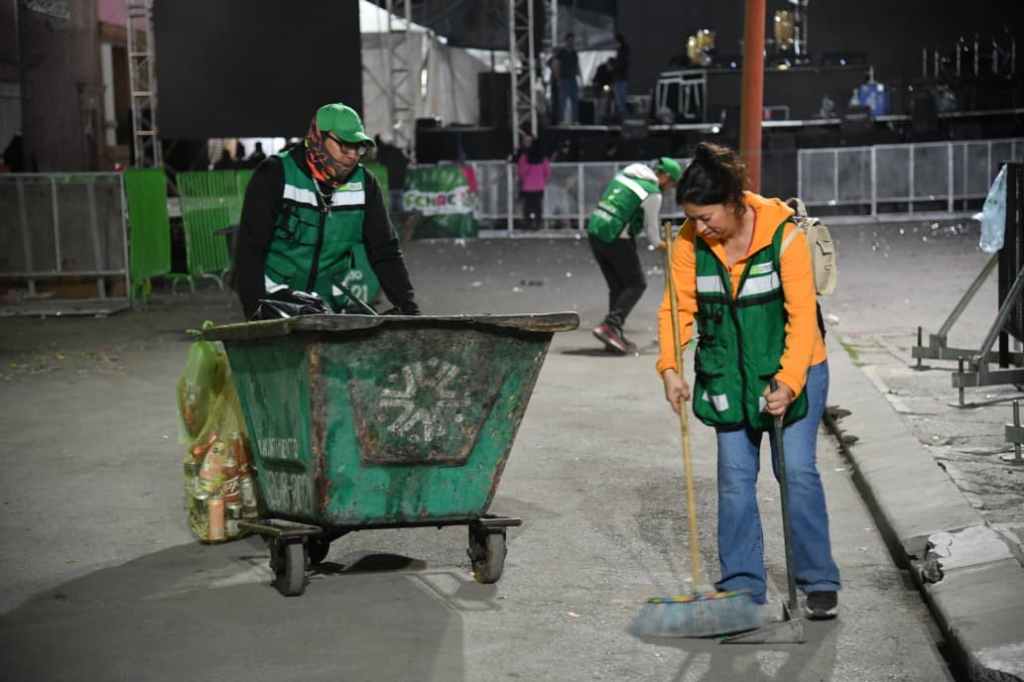 - Seis cuadrillas de barrido manual refuerzan la limpieza continua desde temprana hora hasta la madrugada, recolectando hasta 5 toneladas diarias de desechos.