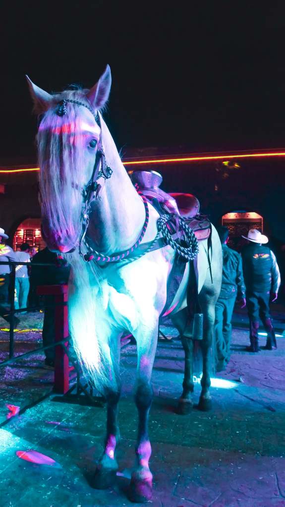 El ambiente se complementó con la presencia de caballos bailadores que, al ritmo de la música, ofrecieron un espectáculo visual único.
