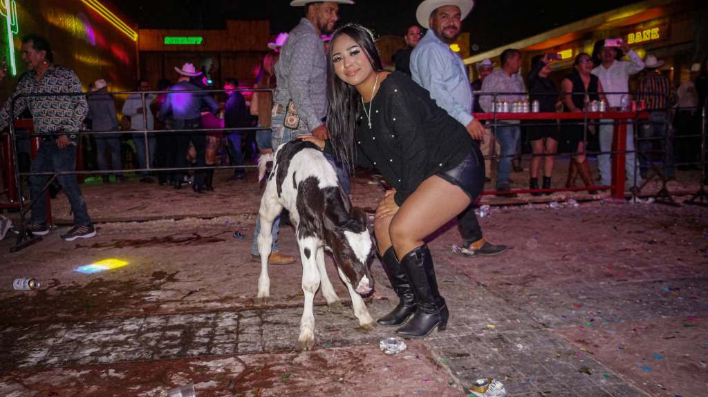 Uno de los momentos más esperados de la noche fue la dinámica en la que jóvenes participaron para ganarse un becerro.