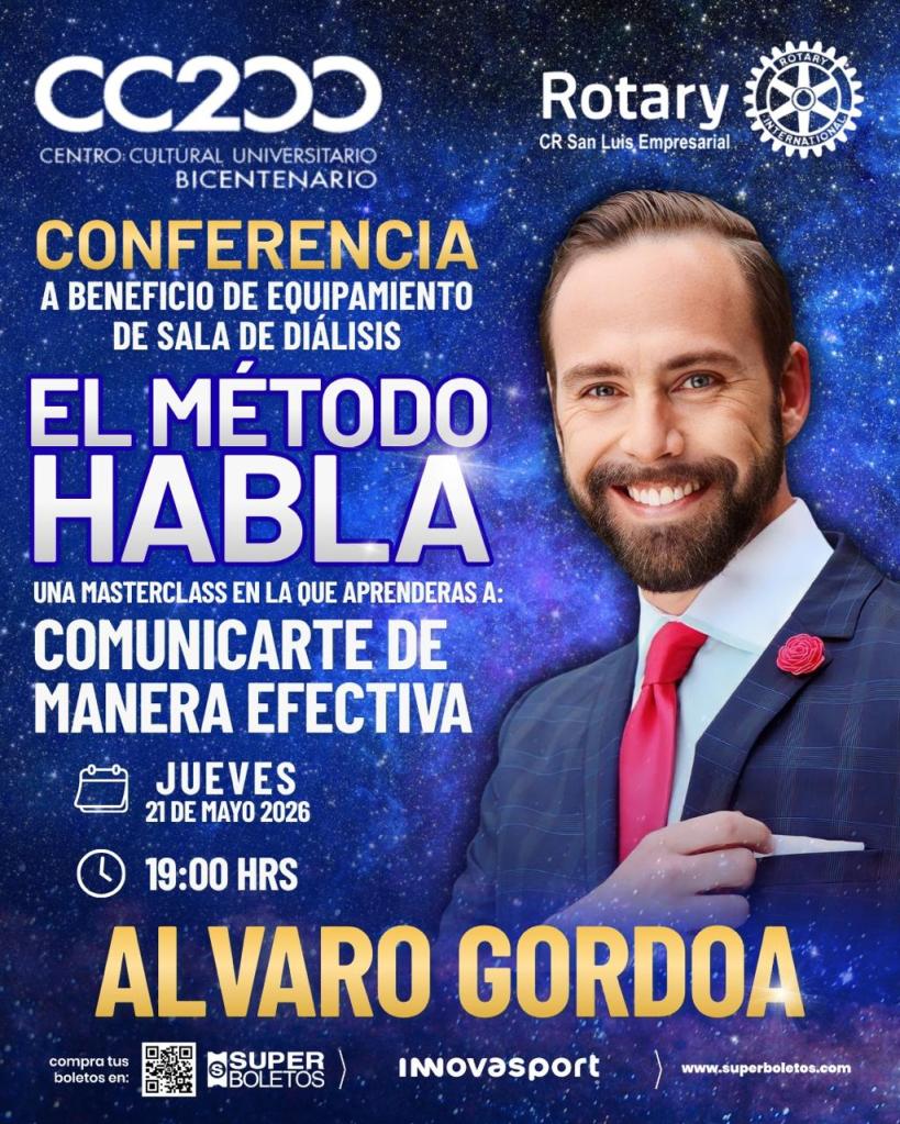 Rotary San Luis empresarial, presenta a ÁLVARO GORDOA con la esperada masterclass que te ayudará a comunicarte de forma efectiva: EL MÉTODO HABLA.